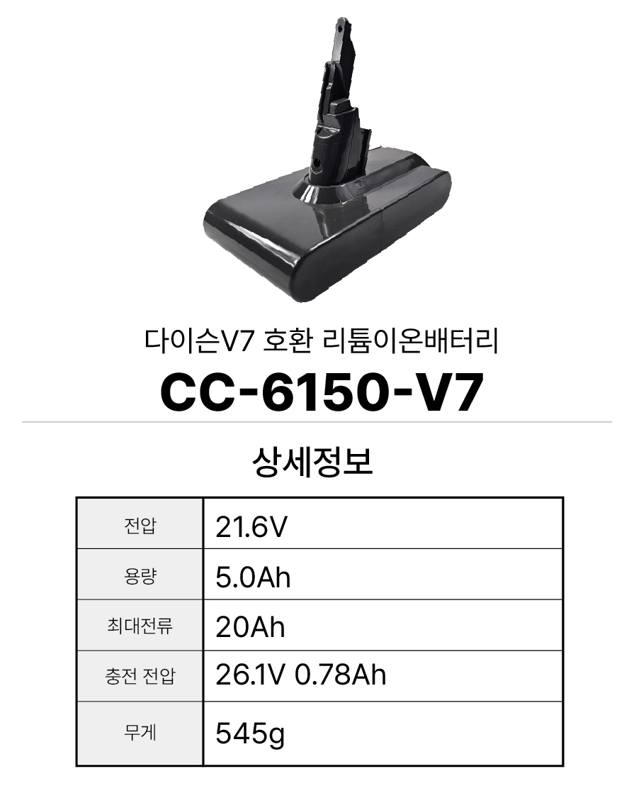 가정용 무선 청소기용 배터리 다이슨V7 호환배터리 CC-6150-V7 작성자관리자 등록일 25-11-20 조회35회 본문 다이슨V7 호환배터리 CC-6150-V7 다이슨V6 호환배터리 CC-6150-V6 목록