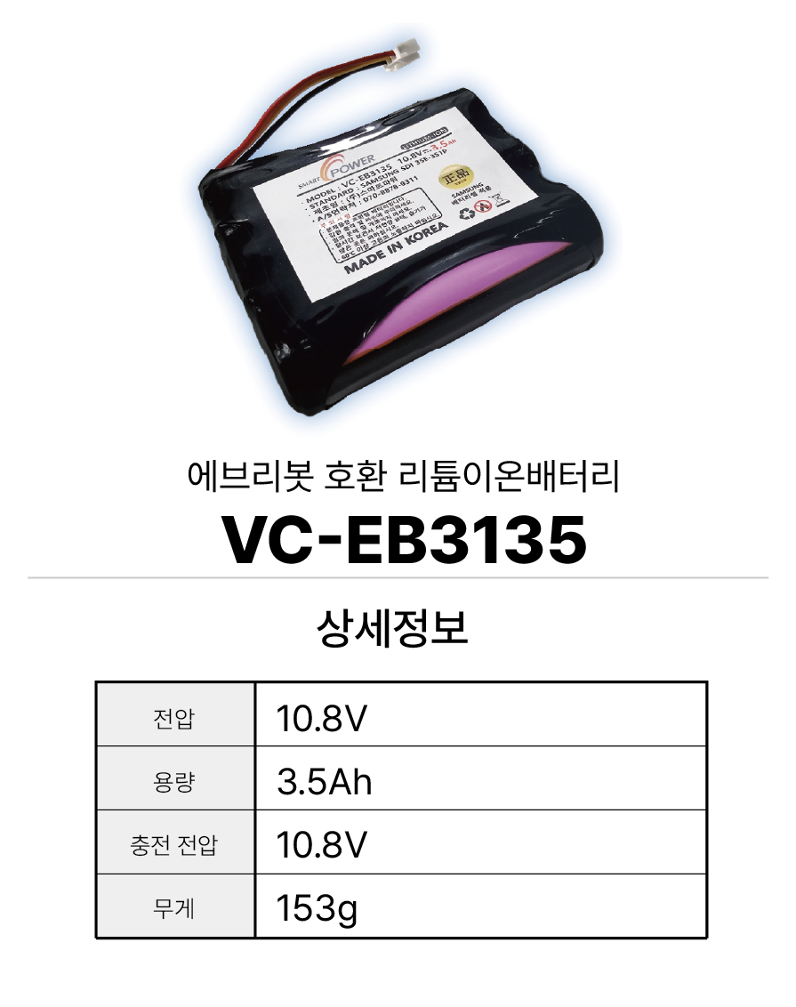 가정용 로봇 청소기 배터리 에브리봇 호환 배터리 VC-EB3135 작성자관리자 등록일 25-11-20 조회69회 본문 에브리봇 호환 배터리 VC-EB3135 에코백스 호환 배터리 CC-4210-DO 샤오미 로보락 드리미 호환 배터리 CC-4250-DM 목록